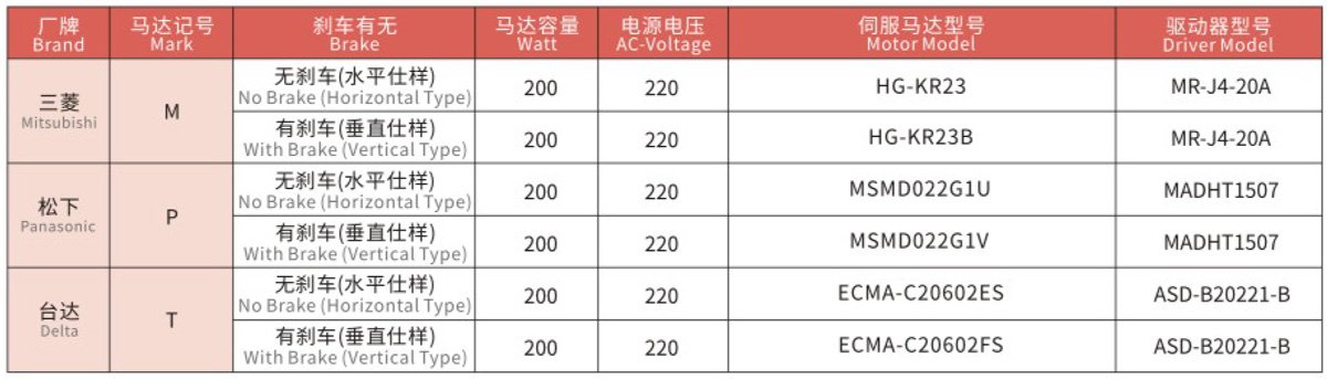 搭配伺服马达一览表